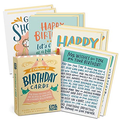 Em & Friends Birthday Cards, Box of 8 Assorted