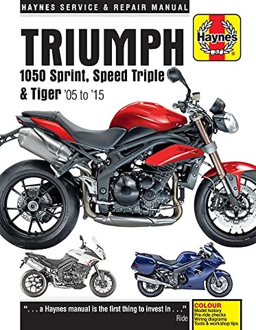 Specific Models Covered:Sprint ST 1050cc (2005-2011); Sprint GT 1050cc (2011-2015); Speed Triple 1050cc (2005-2015); Speed Triple R 1050cc (2012-2015); Tiger 1050cc (2007-2011); Tiger SE 1050cc (2010-2013); Tiger Sport 1050cc (2013-2015); Special Edition versions, 94 and 94R Speed Triples included;