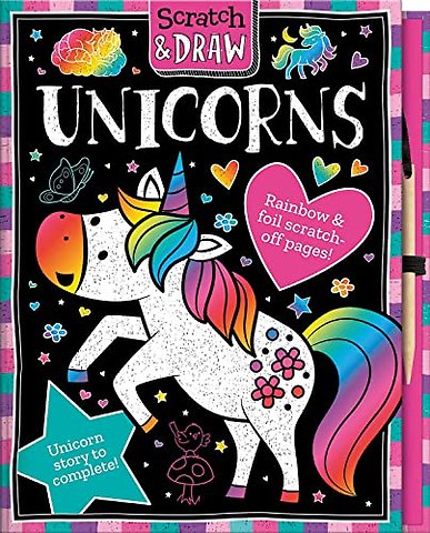 Create AMAZING rainbow and foil art with Scratch and Draw Unicorns!Includes step-by-step instructions to learn how to draw amazing pictures of magical unicorns. Rainbow patterns and shiny foil hide beneath the black coating-use the wooden stylus to cleverly reveal them with a simple scratch, and then complete the magical unicorn story too!