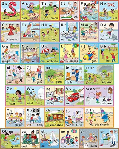 The Jolly Phonics Wall Frieze shows all 42 letter sounds, not just the alphabet. It has seven versatile sections that can be put up individually, used to form a continuous strip around a wall, or placed in a block - like a giant poster.
