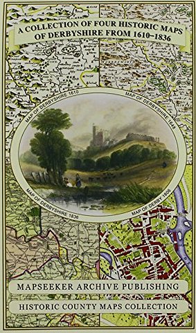 Derbyshire 1610 - 1836 - Fold Up Map that features a collection of Four Historic Maps, John Speed's County Map 1611, Johan Blaeu's County Map of 1648, Thomas Moules County Map of 1836 and Cole and Roper's Plan of the City of Derby 1806. The map's also fea