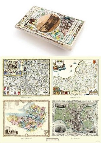 Somersetshire 1611 - 1836 - Fold Up Map that features a collection of Four Historic Maps, John Speed's County Map 1611, Johan Blaeu's County Map of 1648, Thomas Moules County Map of 1836 and a Plan of the City of Bath from 1851 by John Tallis. The maps fe
