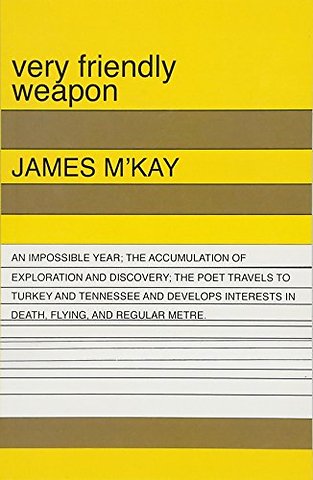 The poems in Very Friendly Weapon run the course of an impossible year, the accumulation of several years' explorations and discoveries: poet James M'Kay travels as far as Turkey and Tennessee while still struggling to leave Tyneside, developing interests in death, flying, and regular metre.