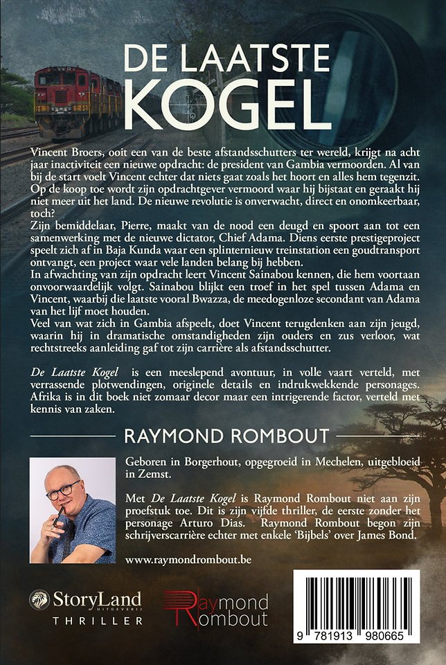 Met DE LAATSTE KOGEL is Raymond Rombout niet aan zijn proefstuk toe. Dit is zijn vijfde thriller, de eerste zonder het personage Arturo Dias. Raymond Rombout begon zijn schrijverscarrière echter met enkele ‘Bijbels’ over James Bond.