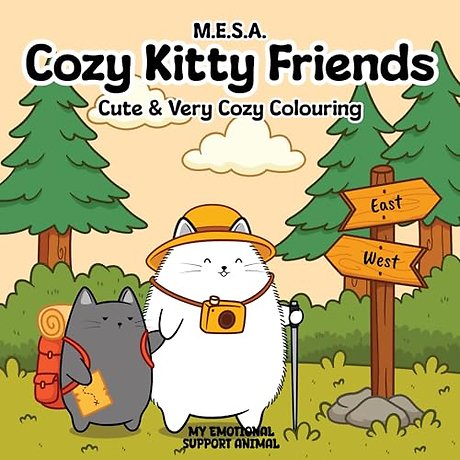 It's colouring time! Get cozy and comfy while colouring in the wonderful world of M.E.S.A kitties and friends! Get a warm and fuzzy feeling as you colour in 45 black and white drawings from the cozy and wonderful world of M.E.S.A kitties and friends, having a tea party, enjoying a yoga session and more.