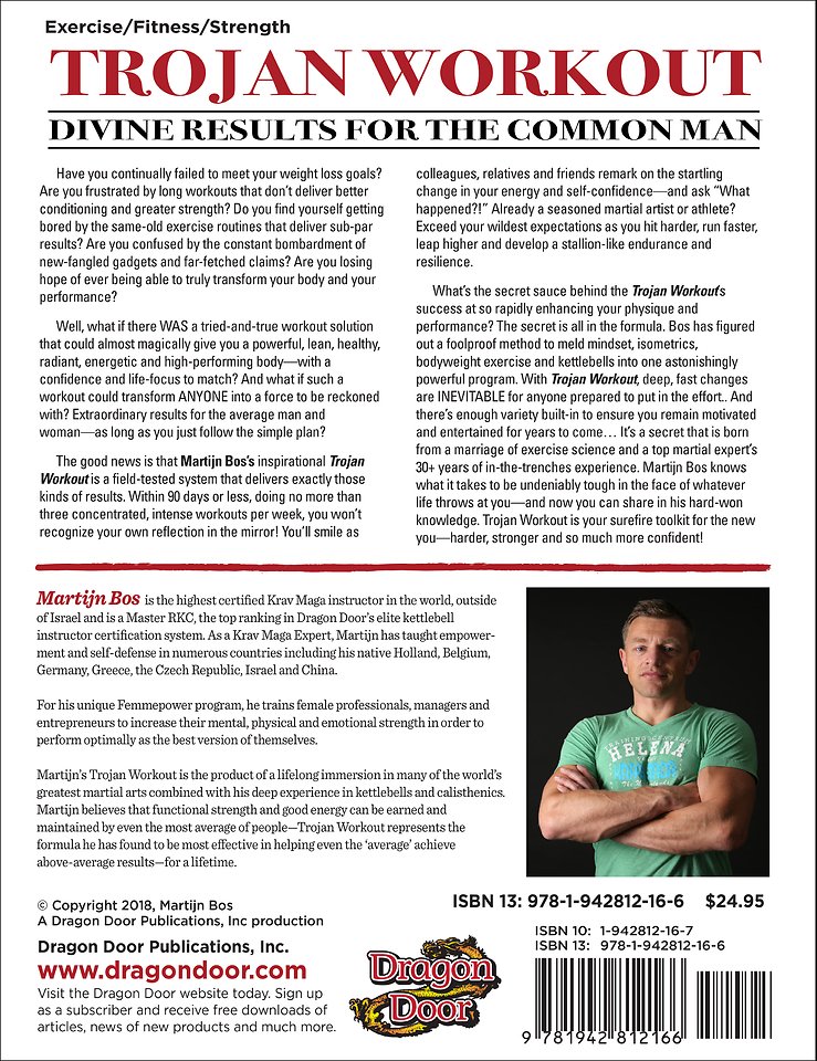 De Trojan Workout is een trainingsmethode waarmee je in minimale tijd, maximale resultaten kunt boeken. Een training die perfect past in een wereld waarin we continu bezig zijn met strakke planningen maken en zo efficiënt mogelijk alles indelen. De Trojan Workout is een fitness-filosofie, maar bovenal een lifestyle; een systeem van fysieke veranderingen die het voor iedereen mogelijk maakt om in één training alle 5 grond-motorische eigenschappen (kracht, snelheid, uithoudingsvermogen, coördinatie en lenigheid) te trainen. “Dit boek is mijn persoonlijke verhaal. Dit boek gaat over mijn levensmissie: hoe ik mijn kracht heb gevonden, mijn doelen heb kunnen realiseren en iedereen dit voor zichzelf kan bereiken. Ik wil anderen zowel fysiek als mentaal helpen groeien. Als het goed uitgevoerd wordt, kan de Trojan Workout je leven compleet veranderen. Dit deed het voor mij en dat kan het ook voor jou zijn – er vanuit gaande dat je er met de vereiste intensiteit, vasthoudendheid en consistentie helemaal voor gaat.”, aldus Martijn Bos.