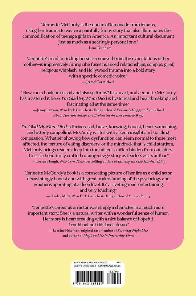 In I’m Glad My Mom Died, Jennette recounts all this in unflinching detail—just as she chronicles what happens when the dream finally comes true. Cast in a new Nickelodeon series called iCarly, she is thrust into fame. Though Mom is ecstatic, emailing fan club moderators and getting on a first-name basis with the paparazzi (“Hi Gale!”), Jennette is riddled with anxiety, shame, and self-loathing, which manifest into eating disorders, addiction, and a series of unhealthy relationships. These issues only get worse when, soon after taking the lead in the iCarly spinoff Sam & Cat alongside Ariana Grande, her mother dies of cancer. Finally, after discovering therapy and quitting acting, Jennette embarks on recovery and decides for the first time in her life what she really wants.