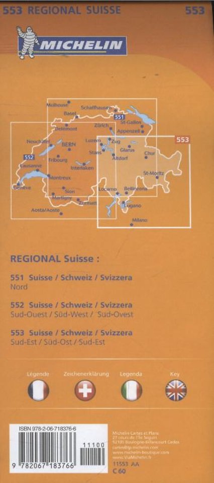 Michelin Wegenkaart 553 Zwitserland Zuidoost
