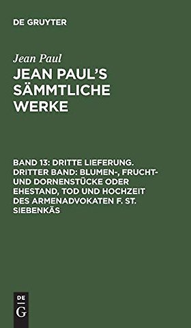 Dritte Lieferung. Dritter Band: Blumen-, Frucht- und Dornenstucke oder Ehestand, Tod und Hochzeit des Armenadvokaten F. St. Siebenkas