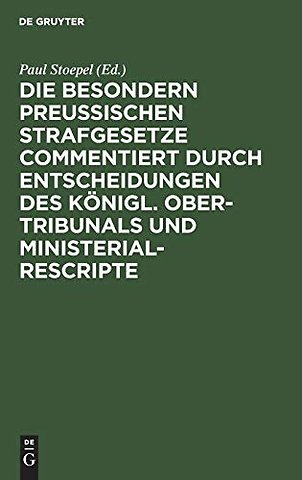 Die besondern Preussischen Strafgesetze commentiert durch Entscheidungen des Konigl. Ober-Tribunals und Ministerial-Rescripte