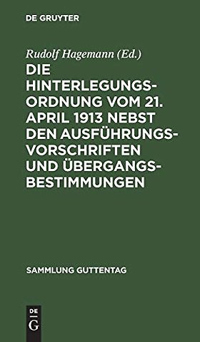 Die Hinterlegungsordnung vom 21. April 1913 nebst den Ausführungsvorschriften und Übergangsbestimmungen