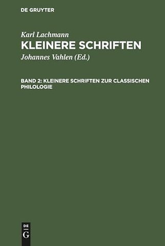 Kleinere Schriften Zur Classischen Philologie
