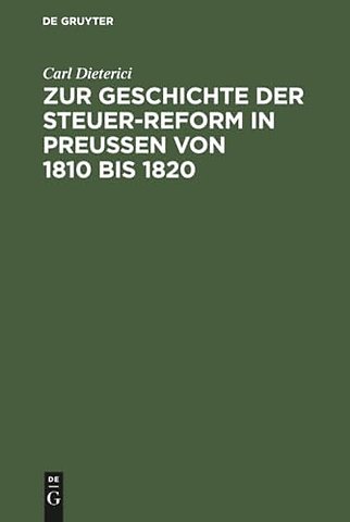 Zur Geschichte Der Steuer-Reform in Preußen Von 1810 Bis 1820