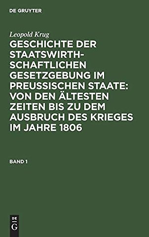 Leopold Krug: Geschichte Der Staatswirthschaftlichen Gesetzgebung Im Preußischen Staate: Von Den Altesten Zeiten Bis Zu Dem Ausbruch Des Krieges Im Jahre 1806. Band 1