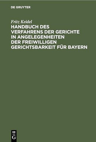 Handbuch Des Verfahrens Der Gerichte in Angelegenheiten Der Freiwilligen Gerichtsbarkeit Fur Bayern