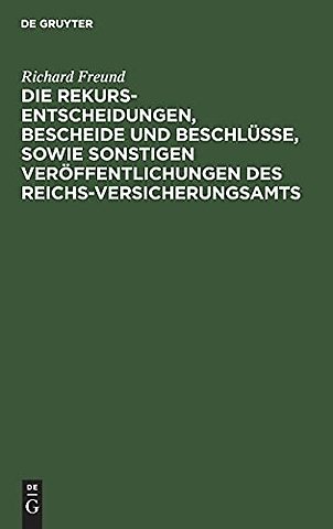 Die Rekurs-Entscheidungen, Bescheide Und Beschlusse, Sowie Sonstigen Veroffentlichungen Des Reichs-Versicherungsamts