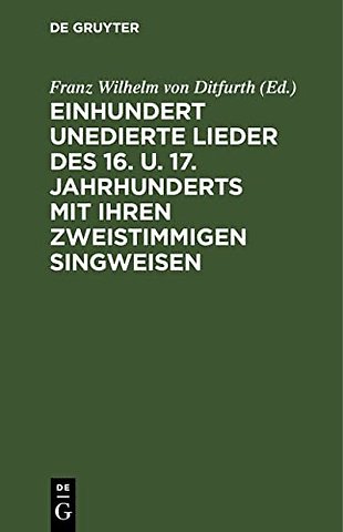 Einhundert Unedierte Lieder Des 16. U. 17. Jahrhunderts Mit Ihren Zweistimmigen Singweisen