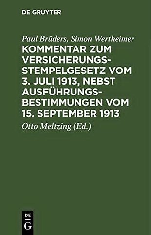 Kommentar Zum Versicherungsstempelgesetz Vom 3. Juli 1913, Nebst Ausfuhrungsbestimmungen Vom 15. September 1913