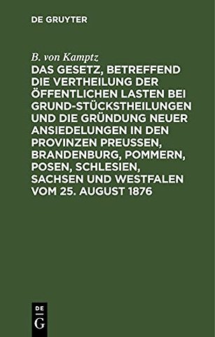 Das Gesetz, Betreffend Die Vertheilung Der Offentlichen Lasten Bei Grundstuckstheilungen Und Die Grundung Neuer Ansiedelungen in Den Provinzen Preußen, Brandenburg, Pommern, Posen, Schlesien, Sachsen Und Westfalen Vom 25. August 1876