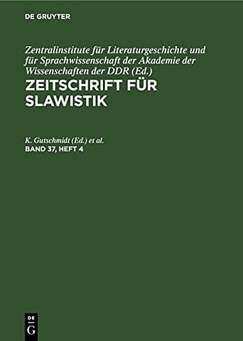 Zeitschrift Fur Slawistik. Band 37, Heft 4