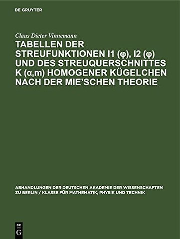 Tabellen Der Streufunktionen I1 (φ), I2 (φ) Und Des Streuquerschnittes K (α, M) Homogener Kugelchen Nach Der Mie'schen Theorie