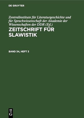 Zeitschrift Fur Slawistik. Band 34, Heft 3