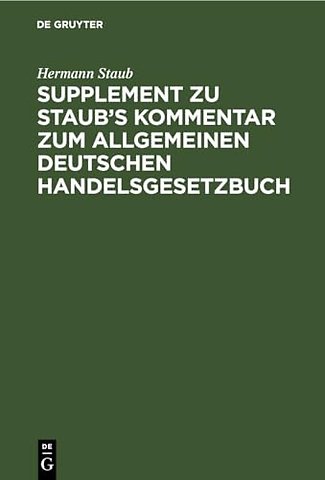 Supplement Zu Staub's Kommentar Zum Allgemeinen Deutschen Handelsgesetzbuch