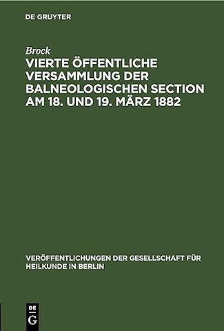 Vierte Offentliche Versammlung Der Balneologischen Section Am 18. Und 19. Marz 1882