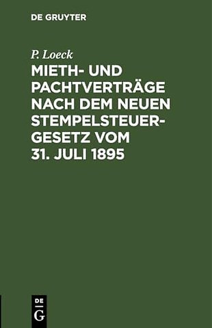 Mieth- Und Pachtvertrage Nach Dem Neuen Stempelsteuergesetz Vom 31. Juli 1895