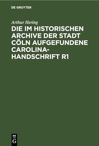 Die Im Historischen Archive Der Stadt Coln Aufgefundene Carolina-Handschrift R1