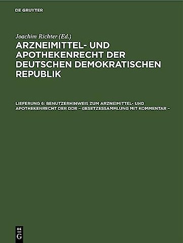Benutzerhinweis Zum Arzneimittel- Und Apothekenrecht Der DDR - Gesetzessammlung Mit Kommentar -