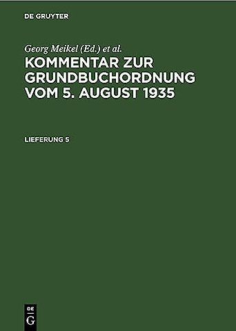 Kommentar Zur Grundbuchordnung Vom 5. August 1935. Lieferung 4