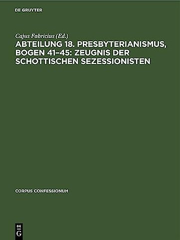 Abteilung 18. Presbyterianismus, Bogen 41-45: Zeugnis Der Schottischen Sezessionisten