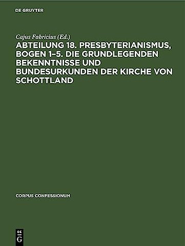Abteilung 18. Presbyterianismus, Bogen 1-5. Die Grundlegenden Bekenntnisse Und Bundesurkunden Der Kirche Von Schottland