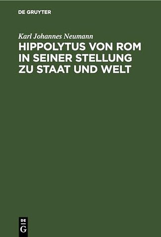 Hippolytus Von ROM in Seiner Stellung Zu Staat Und Welt