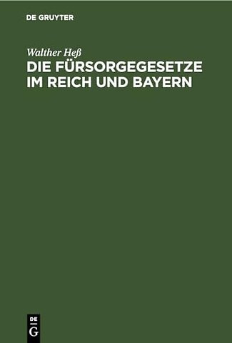 Die Fursorgegesetze Im Reich Und Bayern
