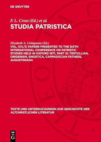 Papers presented to the Sixth International Conference on Patristic Studies held in Oxford 1971, Part III: Tertullian, Origenism, Gnostica, Cappadocian Fathers, Augustiniana