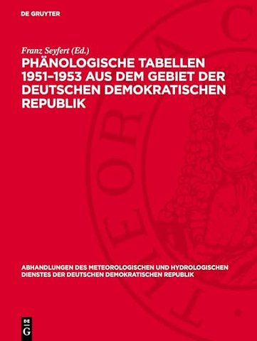 Phänologische Tabellen 1951–1953 aus dem Gebiet der Deutschen Demokratischen Republik