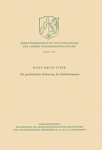 Die geschichtliche Bedeutung des Hellenennamens.- 1. Das Problem.- 2. Der Hellenenname seit byzantinischer Zeit.- 3. Alt-Hellas’ geographische Grundlagen.- 4. Der Ursprung des Hellenennamens.- 5. Auswirkungen der Perserkriege.- 6. Der Hellenenname in klassischer Zeit.- 7. Angriffe sophistischer Kritik.- 8. Das Zeitalter Philipps und Alexanders des Großen.- 9. Hellenenname und Weltgriechentum. Rückblick.- Diskussionsbeiträge.