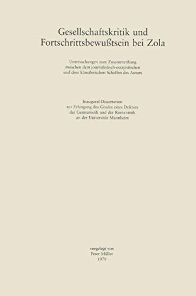 Gesellschaftskritik und Fortschrittsbewußtsein bei Zola