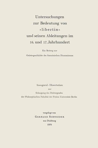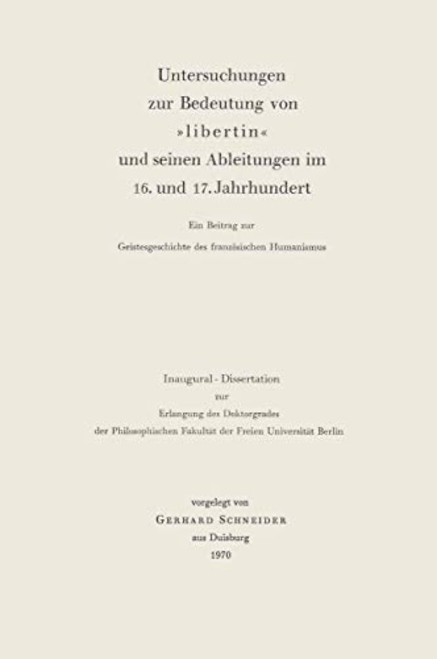 Untersuchungen zur Bedeutung von »Libertin« und seinen Ableitungen im 16. und 17. Jahrhundert