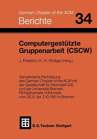 Computergestützte Gruppenarbeit — Einleitende Bemerkungen zur ersten deutschen CSCW-Tagung.- Eingeladene Vorträge.- Coordination Problem Analysis From the Coordination Mechanics Perspective.- Gruppenarbeit — arbeitspsychologische Konzepte und Beispiele.- Angenommene Vorträge.- Ein Konzept von Kooperation und die technische Unterstützung kooperativer Prozesse in Bürobereichen.- Zur Bedeutung psychologischer Arbeitsanalyse für die Gestaltung computerunterstützter kooperativer Arbeit.- Koordinationsmodelle für Computerunterstützte Gruppenarbeit.- Enabling States Analysis — Gestaltung benutzbarer Gruppenarbeitssysteme.- Kooperative Konfiguration — Ein Konzept zur Systemanpassung an die Dynamik kooperativer Arbeit.- Overview — A Key Concept in Computer Support for Cooperative Work.- Die CATeam Raum Umgebung als Mensch-Computer Schnittstelle.- Standardsoftware als Basis eines Integrierten Electronic Meeting System.- Telekonferenzsystem mit graphischer Dialogsteuerung.- Wirklichkeitsgerechte Koordinierung kooperativer Bürovorgänge.- Effekte der Nutzung eines Bürokommunikationssystems auf Arbeitsprozesse und-Strukturen.- Erfahrungen mit dem Bürovorgangssystem DOMINO.- Auswirkungen computermediierter Kommunikation auf Gruppenentscheidungen.- Kooperatives Arbeiten am multifunktionalen Bewegtbild-Arbeitsplatz mfBApl.- MALIBU: Interaktives kooperatives Arbeiten in verteilter Multimedia-Umgebung.- Wissensbasierte Unterstützung von Gruppenarbeit oder: Die Emanzipation der maschinellen Agenten.- Computergestützte, arbeitnehmerorientierte Arbeitszeitgestaltung — Möglichkeiten, Anforderungen, Grenzen.