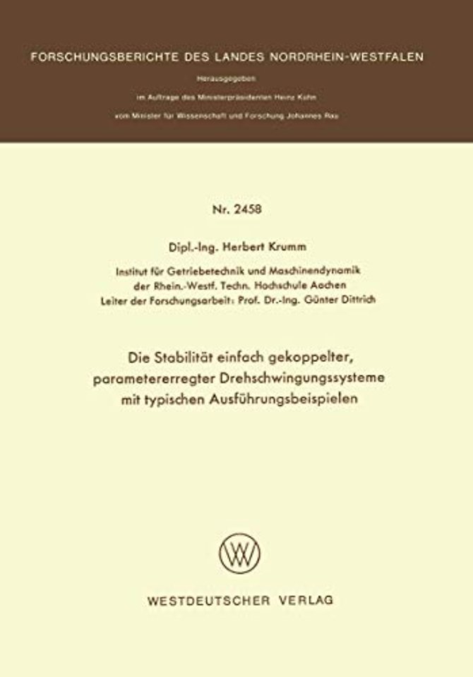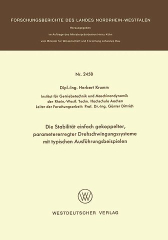 Parametererregte Schwingungen treten beim Antrieb drehelastisch ge koppelter Getriebe auf, deren reduzierte Massentrti.gheitsmomente mit ", der Zeit periodisch veriinderlich sind. Da ihre Berechnung sehr aufw- dig ist, hat man sich bisher, abgesehen von Sonderfti.llen, auf die Be handlung von Drehschwingungssystemen mit konstanten, mittleren Mas sentragheitsmomenten beschrti.nkt. Diese schwingungstechnischen Er satzmodelle lassen nur unvollstiindig die Instabilitti.ten mit diskreten Re sonanzstellen erkennen, nicht aber die zu beachtenden Instabilitatsberei che. In der vorliegenden Arbeit werden deshalb Drehschwingungssysteme mit mehreren Freiheitsgraden unter Beriicksichtigung der veriinderlichen Massentragheitsmomente behandelt. Dabei wurden zahlreiche Daten von Verarbeitungsmaschinen sowie Kraft- und Arbeitsmaschinen ausgewertet, die mehrere Firmen (s. Anhang) dankenswerterweise zur VerfUgung ge stellt haben. Die umfangreichen Rechnungen zur Erstellung der Stabili tatskarten, die AufschluI3 fiber die kritischen Drehzahlbereiche' geben. wurden mit Hille eines Rechenprogramms auf dem Digitalrechner CD 6400 der RWTH Aachen abgewickelt. Das Forschungsvorhaben, fUr das eine finanzielle Unterstiitzung durch das Land Nordrhein-Westfalen urspriinglich von meinem Amtsvorgiinger Herrn Prof. Dr. -Ing. W. Meyer zur Capellen beantragt wurde, ist im wesentlichen unter meiner Leitung von Herrn Dipl. -Ing. H. Krumm selbstandig durchgefUhrt worden. Besonderer Dank gebiihrt vom Lande N ordrhein-Westfalen dem Herrn Ministerprasidenten Heinz Kiihn und dem Herrn Minister fUr Wissenschaft und Forschung Johannes Rauh fUr die Forderung der vorliegenden Forschungsarbeit.