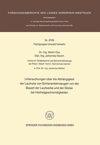 Untersuchungen über die Abhängigkeit der Laufruhe von Schienenfahrzeugen von der Bauart der Laufwerke und der Gleise bei Höchstgeschwindigkeiten