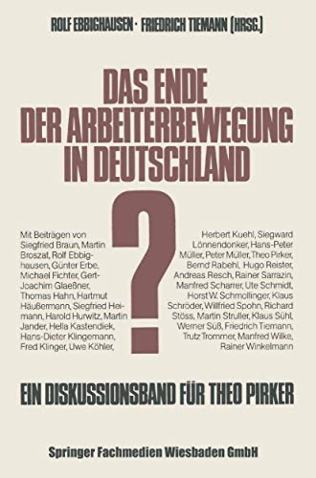 Das Ende der Arbeiterbewegung in Deutschland? Lange Debatten und ein neuer Diskussionsband zum sechzigsten Geburtstag von Theo Pirker.- Ausgangsthesen.- Vom „Ende der Arbeiterbewegung“.- Geschichte der Arbeiterbewegung — Praxis und Theorie: Neueinschätzungen, Analysen, Kommentare.- Von Erfurt nach Moskau.- Lenins Konzept der proletarischen Revolution: Soziologische Nachbemerkungen zum Leninismus.- Marxismus, Arbeiterbewegung und technologische Geschichtsauffassung.- Krise des Marxismus und Sozialgeschichte der Arbeiterbewegung.- Arbeiterbewegung, Populismus und die neuen sozialen Bewegungen.- Liberaler Staat, Industrie und Arbeiterschaft in Baden 1880–1910: Aus den Berichten der Großherzoglich-Badischen Fabrikinspektion.- Zur Situation der deutschen Arbeiterbewegung nach dem Zweiten Weltkrieg: Historisch-empirische Studien.- Arbeiterbewegung unter der Besatzung. Bedingungen ihrer Rekonstituierung am Beispiel Stuttgarts 1945–1946.- Katholische Arbeiterbewegung zwischen Integralismus und Interkonfessionalismus: Wandlungen eines Milieus.- Kontinuität und Bruch: Sozialdemokratie, Massenöffentlichkeit und die Besatzungsmächte im Berliner Abwehrkampf nach 1945.- Arbeiterbewegung, SPD und deutsche Einheit 1945/46.- Zum Scheitern linker Sammlungsbewegungen zwischen SPD und KPD/SED nach 1945: Die Beispiele USPD und UAPD.- Zur Betriebs- und Gewerkschaftspolitik der KPD nach 1945.- Betriebsräte und Neuordnung in der sowjetischen Besatzungszone. Zur Kritik eines politischen Mythos.- Zur neueren Entwicklung der Arbeiterbewegung in der Bundesrepublik: Krise und Kritik.- Arbeiterbewegung und Basiskonsens: Die Entwicklung des westdeutschen Parteiensystems.- Das „Volkspartei“-Konzept der SPD.- Struktur- und Organisationsprobleme einer staatstragendenArbeitnehmerpartei: Zum Verhältnis von SPD und Gewerkschaften seit 1966.- Fragmentierung der Arbeiterklasse: Krisenbewältigungsstrategien und betriebliche/gewerkschaftliche Interessenpolitik.- Tradition der Arbeiterbewegung und Gewerkschaften in der Provinz heute: Eine Fallstudie.- Gewerkschaftsjugend in der Krise.- Zur Entwicklung in der DDR: Analysen, Materialien.- Bürokratischer Sozialismus. Aspekte des staatlich etablierten Sozialismus in der DDR.- Produktionsarbeiterschaft und wissenschaftlich-technische Intelligenz in der DDR.- Lehren aus dem Studium der Arbeiterbewegung in Solingen.- Arbeiterklasse und Arbeiterbewußtsein heute: Tendenzen, Perspektiven, Kontroversen.- Ökonomische Krisenentwicklung und Wandlungen des Arbeiterbewußtseins.- Soziale Lagerung, Schichtbewußtsein und politisches Verhalten. Die Arbeiterschaft der Bundesrepublik im historischen und internationalen Vergleich.- Arbeiterklasse, Arbeitscharakter und Arbeitsbewußtsein heute: Ein Plädoyer für die Erweiterung des ökonomisch/technisch verengten Arbeitsbegriffs in der Industriesoziologie.- Wandel der Wohnverhältnisse von Arbeitern — Eine Problemskizze.