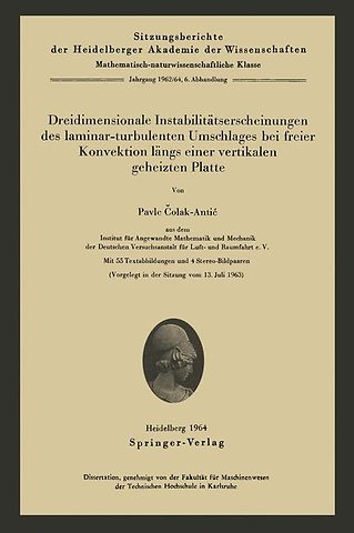 1.0. Experimentelle Apparatur und Methoden.- 1.1. Platte in Wasser.- 1.2. Platte in Luft.- 1.3. Angewandte Visualisierungsmethoden.- 1.4. Beleuchtungsquellen und photographische Ausrüstung.- 1.5. Temperaturmessungen.- 1.6. Geschwindigkeitsmessungen.- 1.7. Hitzdrahtmessungen sehr kleiner Geschwindigkeiten bei gleichzeitig auftretenden Lufttemperaturschwankungen.- 1.8. Hitzdrahtapparatur, -sonden und -eichung.- 1.9. Zwei- und dreidimensionale Störungserzeuger.- 2.0. Versuche mit der Platte in Wasser.- 2.1. Untersuchungen des Strömungsfeldes im Wassertank.- 2.2. Laminare Grenzschichtströmung.- 2.3. Tollmien-Schlichting-artige Störungswellen.- 2.4. Auftreten von Längswirbeln im Umschlaggebiet.- 2.5. Frontale Stereoaufnahmen des Umschlaggebietes.- 2.6. Kinematographische Stromlinien-Aufnahmen von Längswirbeln im Umschlaggebiet.- 3.0. Versuche mit der Platte in Luft.- 3.1. Rauchfäden-Visualisierung des laminar-turbulentenUmschlages.- 3.3. Hitzdrahtmessungen.- 4.0. Diskussion der erhaltenen Ergebnisse und Vergleich mit zur Zeit bestehenden theoretischen Arbeiten.- 4.1. Tollmien-Schlichting-artige Störungen. Vergleich mit den numerischen Resultaten von Kurtz und Crandall.- 4.2. Dreidimensionale Instabilitätserscheinungen und Längswirbelbildung.- 4.3. Vergleich der dreidimensionalen Grenzschicht-Instabilitätserscheinungen bei freier Konvektion und bei inkompressibler Plattenströmung ohne Druckgradienten.- 4.4. Weitere noch offene Fragen und mögliche Verbesserungen der Versuchstechnik.- Zusammenfassung.- Literatur.- Anhang: Eingeführte Bezeichnungen.- Nähere Aufnahmedaten zu den Abbildungen.