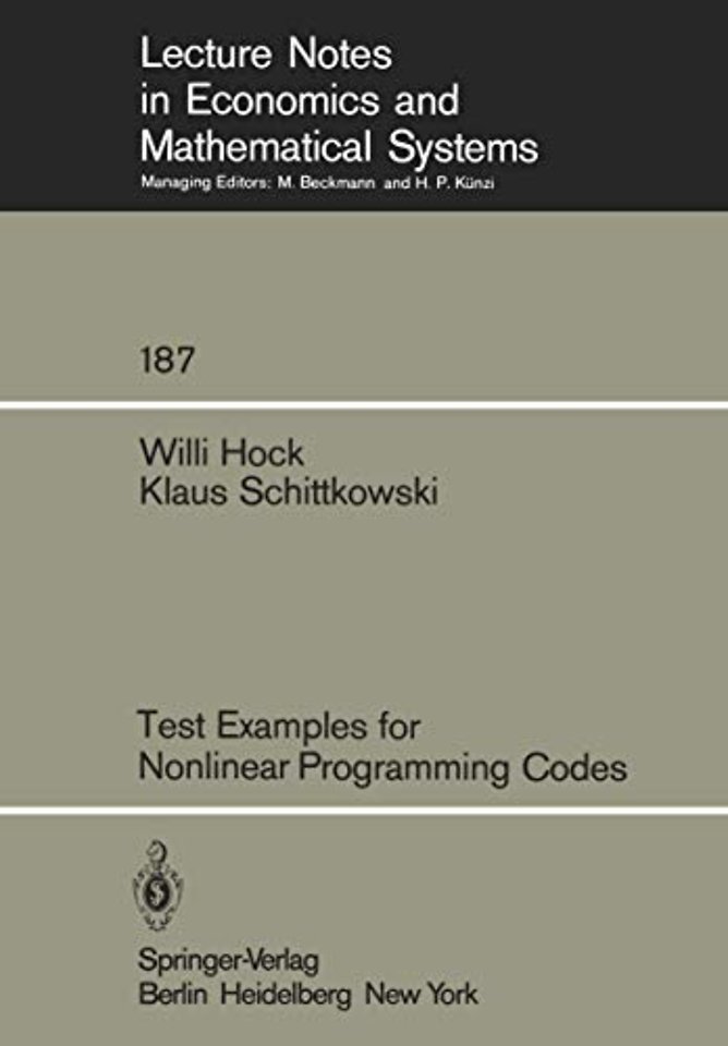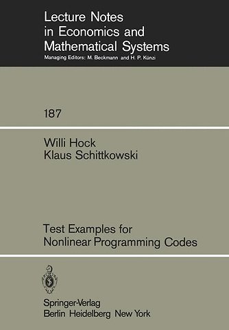 ................................................................. The performance of a nonlinear programming algorithm can only be ascertained by numerical experiments requiring the collection and implementation of test examples in dependence upon the desired performance criterium. This book should be considered as an assis tance for a test designer since it presents an extensive collec tion of nonlinear programming problems which have been used in the past to test or compare optimization programs. He will be in formed about the optimal solution, about the structure of the problem in the neighbourhood of the solution, and, in addition, about the usage of the corresp,onding FORTRAN subroutines if he is interested in obtaining them -ofi a magnetic tape. Chapter I shows how the test examples are documented. In par ticular, the evaluation of computable information about the solu tion of a problem is outlined. It is explained how the optimal solution, the optimal Lagrange-multipliers, and the condition number of the projected Hessian of the Lagrangian are obtained. Furthermore, a classification number is defined allowing a formal description of a test problem, and the documentation scheme is described which is used in Chapter IV to present the problems.