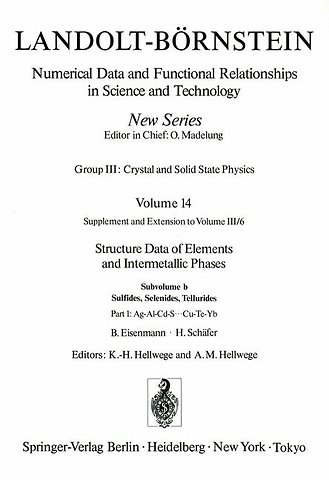 1 Introduction.- List of space group symbols for various settings.- Alphabetical list of frequently used prototypes.- List of symbols and abbreviations.- AgAlCdS - AgBiSeSn.- AgCuCdFeMnSSnZn - AgGePrS.- AgGeS - AgSSb.- AgSSb - AlCeCrS.- AlCeFeS - AlMnPrS.- AlMnS - AsCrCuSe.- AsCrSe - AsRhSe.- AsS - BaCrS.- BaCrS - BaSTiV.- BaSU - BiGeSeTe.- BiGeTe - BiSbSe.- BiSbSeTe - CaLuTe.- CaMgPSe - CdGdSSi.- CdGeLaS - CdSSeTe.- CdSSi - CeHfS.- CeHfSe - CmTe.- CmTe - CoPS.- CoPS - CrCuS.- CrCuS - CrInS.- CrInSZn - CrSTh.- CrSTi - CuDyS.- CuDyS - CuFeSeSn.- CuFeSeTl - CuHgSeSi.- CuHgSeSn - CuMoS.- CuMoS - CuSSb.- CuSSb - CuSbSe.- CuScSe - CuTeYb.- Figs. 1 - 82.- Figs. 83 - 160.- Figs. 161 - 216.- 1933 - 1971.- 1971 - 1974.- 1974 - 1977.- 1977 - 1980.