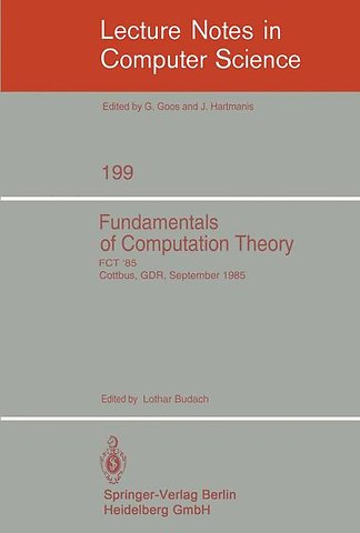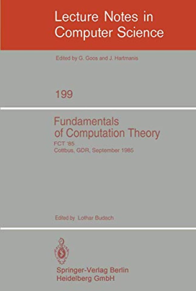 Space complexity of alternating Turing machines.- A unifying theorem for algebraic semantics and dynamic logics.- On some "non-uniform" complexity measures.- Fast parallel vertex colouring.- Muller automata and bi-infinite words.- On formal languages, probabilities, paging and decoding algorithms.- On the restriction of some NP-complete graph problems to permutation graphs.- Fast parallel calculation of the rank of matrices over a field of arbitrary characteristic.- Algorithms solving path systems.- Decidability of confluence for ground term rewriting systems.- Lower bounds on the complexity of 1-time only branching programs (Preliminary version).- On coordinated rewriting.- Elements of a general theory of combinatorial structures.- A language theoretic approach to serialization problem in concurrent systems.- Logic programming and substitutions.- A lower bound on the oscilation complexity of context-free languages.- Depth efficient transformations of arithmetic into boolean circuits.- Free cost measures of trees.- Discrete extremal problems on covering.- Parallel algorithms for connected components in a graph.- Statistical testing of finite sequences based on algorithmic complexity.- Lower bounds for boolean formulae of depth 3 and the topology of the n-Cube (Preliminary version).- Clustering to minimize the sum of volumes of convex hulls of clusters is NP-complete.- Linear comparison complexity of the n-cube membership problem.- String grammars with disconnecting.- Array processing machines.- A fast heuristic for covering polygons by rectangles.- ? ??????? ? ???????????? ?????? ????????? ??????.- Products of group languages.- The complexity of embedding graphs into binary trees.- On some topological properties of logic programs.- Recent results on continuous ordered algebras.- Are lower bounds on the complexity lower bounds for universal circuits?.- Probabilistic algorithms in group theory.- Recent results on codes.- A multiparameter analysis of the boundedness problem for vector addition systems.- About two-way transducers.- Parallel time O(log N) recognition of unambiguous CFLs.- On colour critical graphs.- Generalized thue-morse sequences.- Tree-partite graphs and the complexity of algorithms.- A quadratic regularity test for non-deleting macro s grammars.- Continuous abstract data types: Basic machinery and results.- On the length of single dynamic tests for monotone boolean functions.- Enumerative combinatorics and algebraic languages.- On several kinds of space-bounded on-line multicounter automata.- Iterated linear control and iterated one-turn pushdowns.- On the boolean closure of NP.- The critical complexity of all (monotone) boolean functions and monotone graph properties.- Degeneration of Shimura surfaces and a problem in coding theory.- Quantifiers in combinatory PDL: Completeness, definability, incompleteness.- Partial ordering derivations for CCS.- Intersecting two polyhedra one of which is convex.