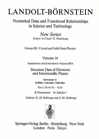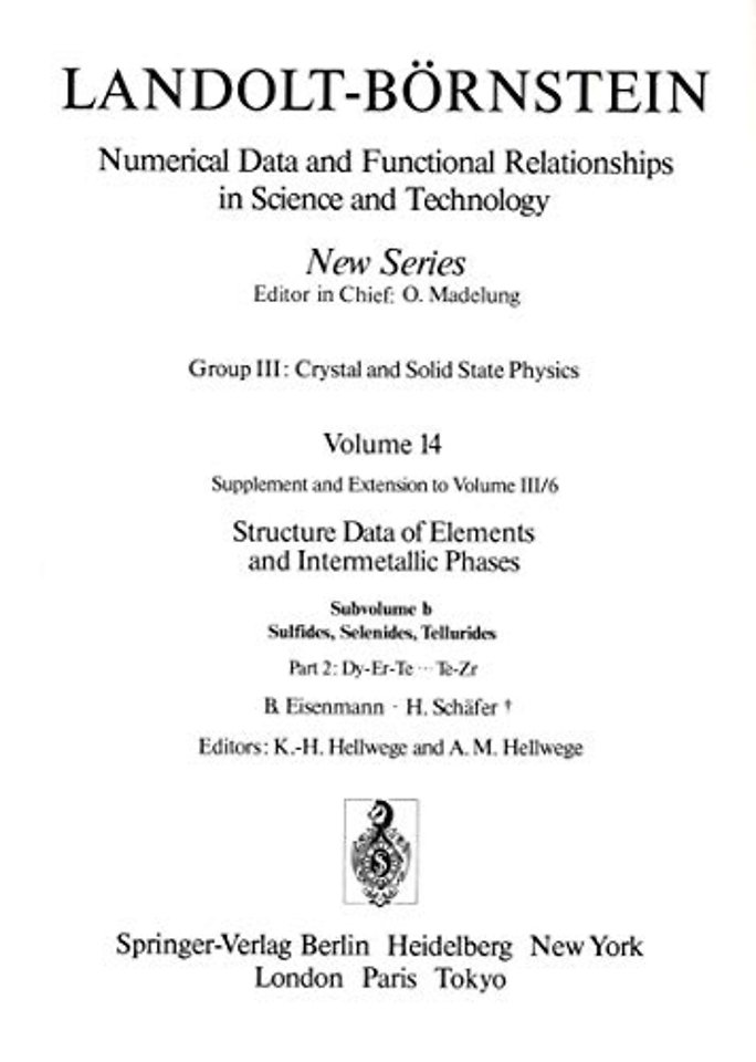 1 Introduction.- List of space group symbols for various settings.- Alphabetical list of frequently used prototypes.- List of symbols and abbreviations.- DyErTe - ErSSc.- ErSSc - EuSbTe.- EuSbTe - FeNiTe.- FeNiTe - FeSTl.- FeSTl - GaMnS.- GaMnS - GaSeTl.- GaSeYb - GeMnS.- GeMnSSm - GeSnTe.- GeSnTe - HoPrS.- HoS - InPbTe.- InPrS - InSeTe.- InSeTl - KSiTe.- KSnTe - LiSTa.- LiSTa - MnNbSe.- MnNdS - MoReSeTe.- MoReTe - NaSSb.- NaSSb - NbSe.- NbSe - NiS.- NiS - NiSeTi.- NiSeTi - PTeU.- PaS - PdSe.- PdSe - PuS.- PuS - SSe.- SSe - STa.- STaTi - SU.- SU - SbSeTl.- SbSeTl - SeTm.- SeTm - TeU.- TeU - TeZr.- Figs. 217 - 276.- Figs. 277 - 340.- Figs. 341 - 393.- Figs. 394 - 453.- Figs. 454 - 494.- Alphabetical index of mineral and common names.